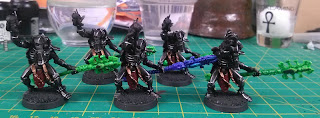 | Loin cloth Blood Red. Figured since Orikan and Crypteks are so similar in design the Necrons iteration might have kept it the same colour. |